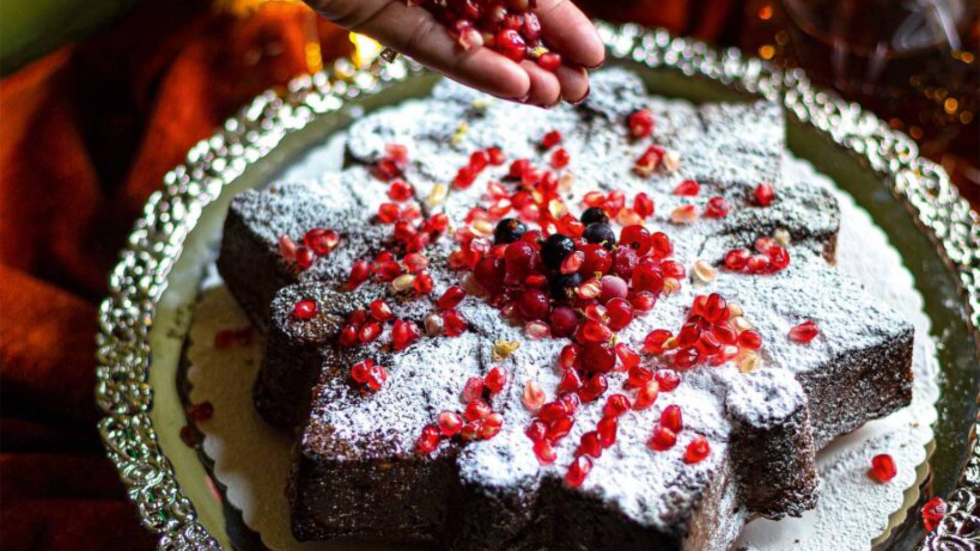 - Πασπαλίζουμε με λίγη ζάχαρη άχνη και σκορπίζουμε τους σπόρους ροδιού.