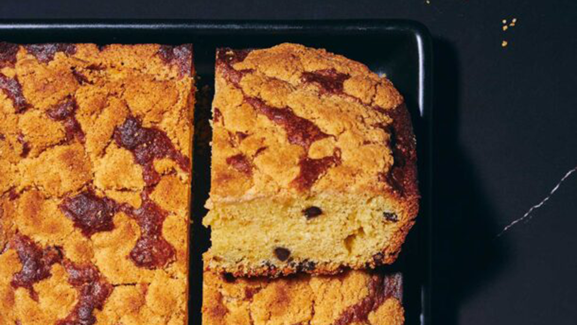 Στρώνουμε ένα τετράγωνο ταψάκι 23 x 23 εκ. με λαδόκολλα, καλύπτοντας και τα πλαϊνά.