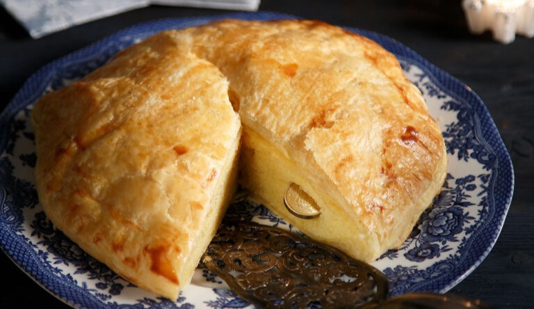 - Για να φτιάξουμε τη galette des Rois (η πίτα των βασιλιάδων), ξεκινάμε χτυπόντας στο μίξερ σε πολύ χαμηλή ταχύτητα το βούτυρο μέχρι να μαλακώσει. Προσθέτουμε με τη σειρά τη ζάχαρη άχνη, τη σκόνη αμυγδάλου, το κορν φλάουρ, τα αυγά, την εσάνς πικραμύγδαλου (1 σταγόνα αρκεί!).