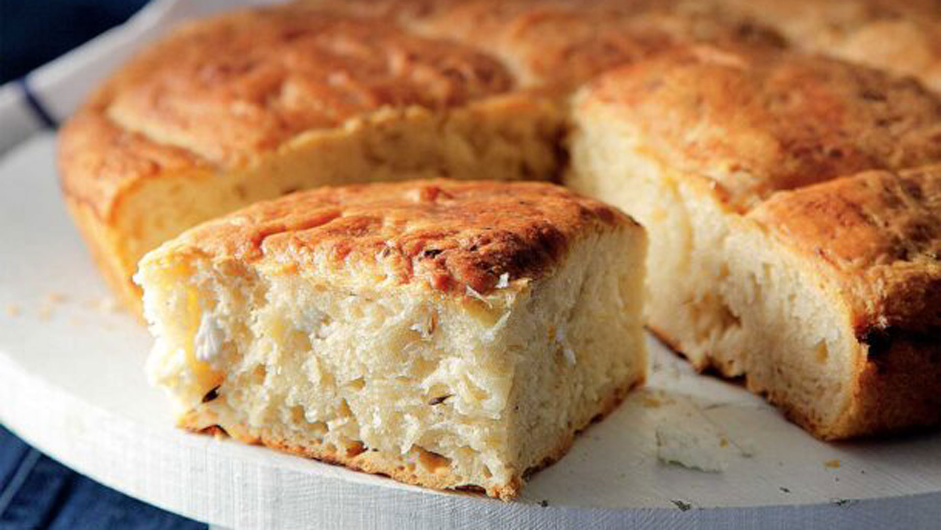 Διαλέγουμε μια πικάντικη φέτα και φτιάχνουμε το πιο ωραίο τυρόψωμο, αφράτο και μοσχοβολιστό – ο μαραθόσπορος του πάει πολύ.