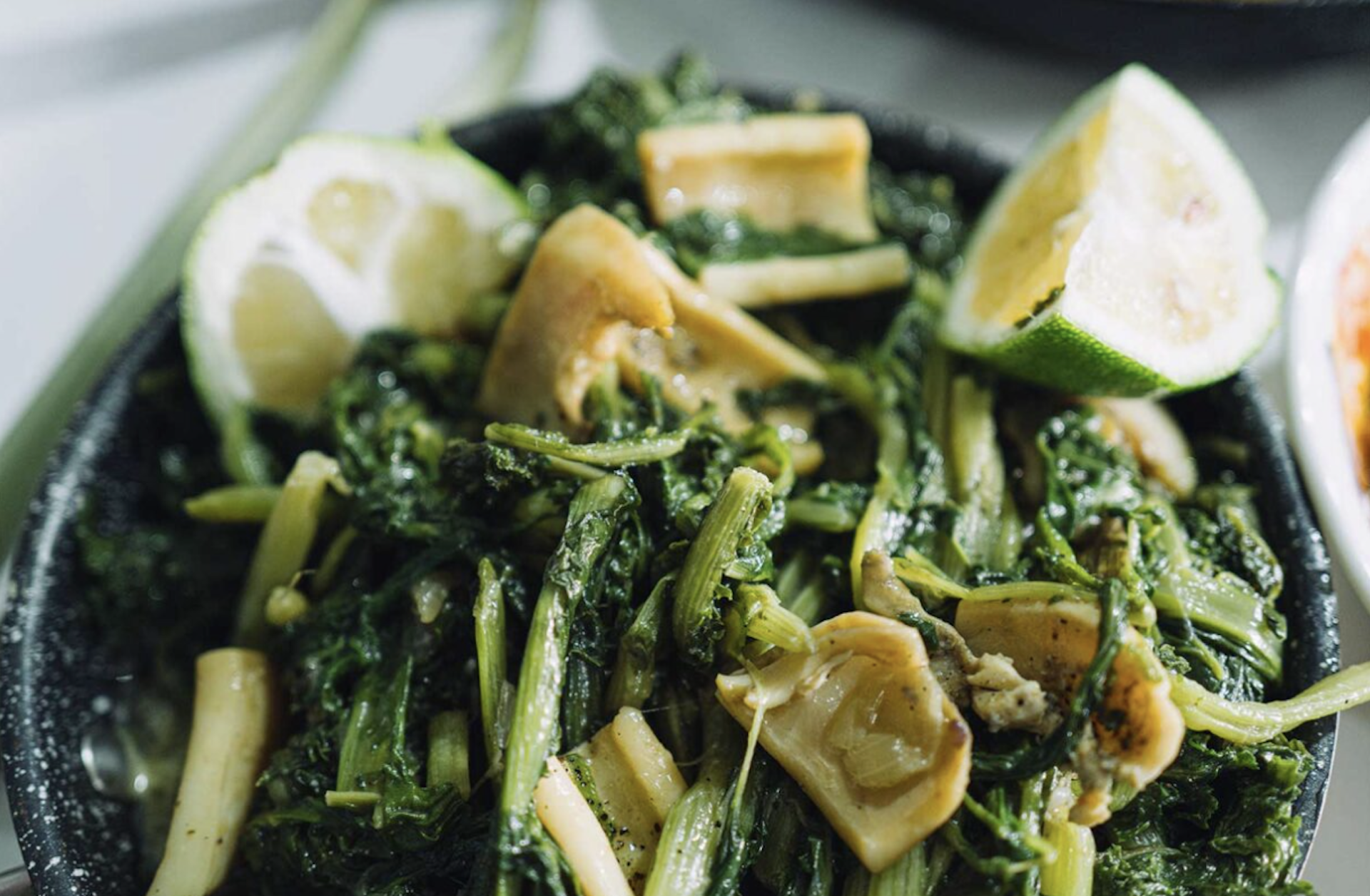 Τα άγρια χόρτα της εποχής, όπως τα ραδίκια με την πικράδα τους και την κρουστή υφή τους, αντικαθιστούν το σύνηθες σπανάκι και ταιριάζουν με τις σουπιές σε ένα πιάτο τραχιάς, συναρπαστικής νοστιμιάς.