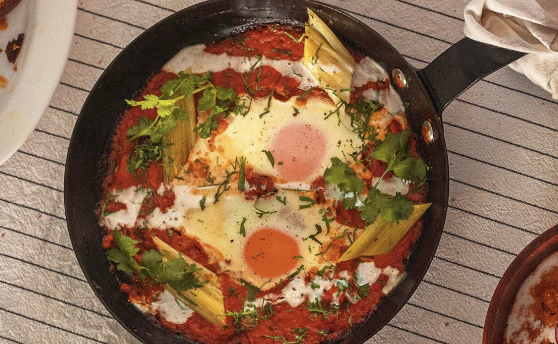 Αυτά τα αυγά με λουκάνικα (αγριογούρουνου!) και γλυκά πράσα σε πικάντικη κόκκινη σάλτσα θα τα θυμόμαστε για καιρό.
