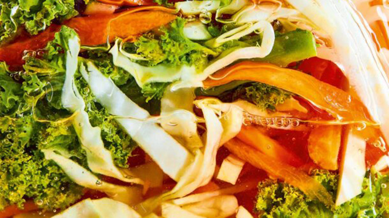 - Για να ετοιμάσουμε την πολίτικη λαχανοσαλάτα με την τεχνική της πίκλας, σε μια λεκάνη ανακατεύουμε καλά το λάχανο, τη σελινόριζα, το kale, τα καρότα και το χρένο (ή τη σάλτσα horseradish).