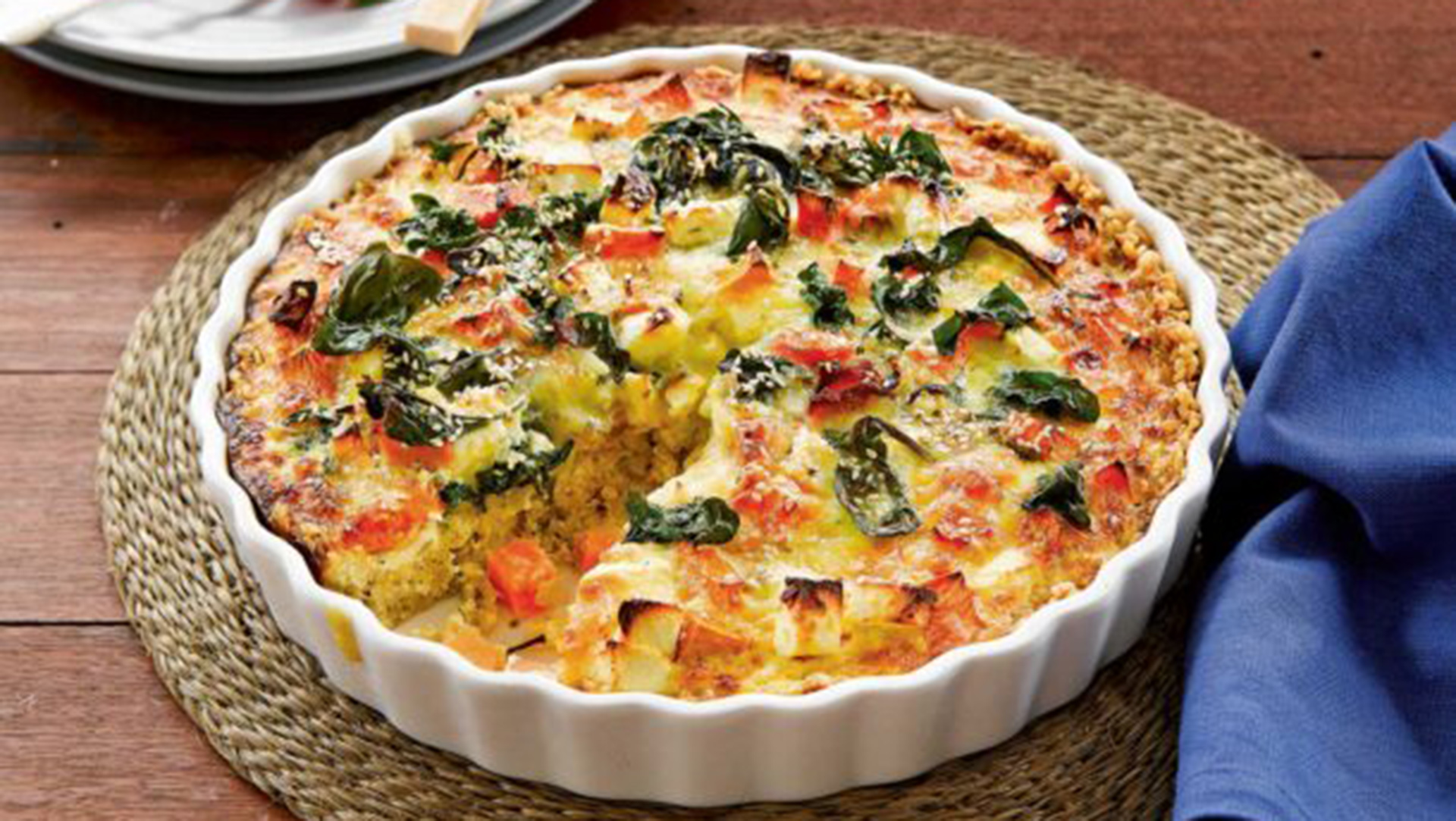 - Για να φτιάξουμε την τάρτα με βάση από ρύζι, με κολοκύθα, σπανάκι και φέτα, ξεκινάμε προθερμαίνοντας το φούρνο στους 180° C.