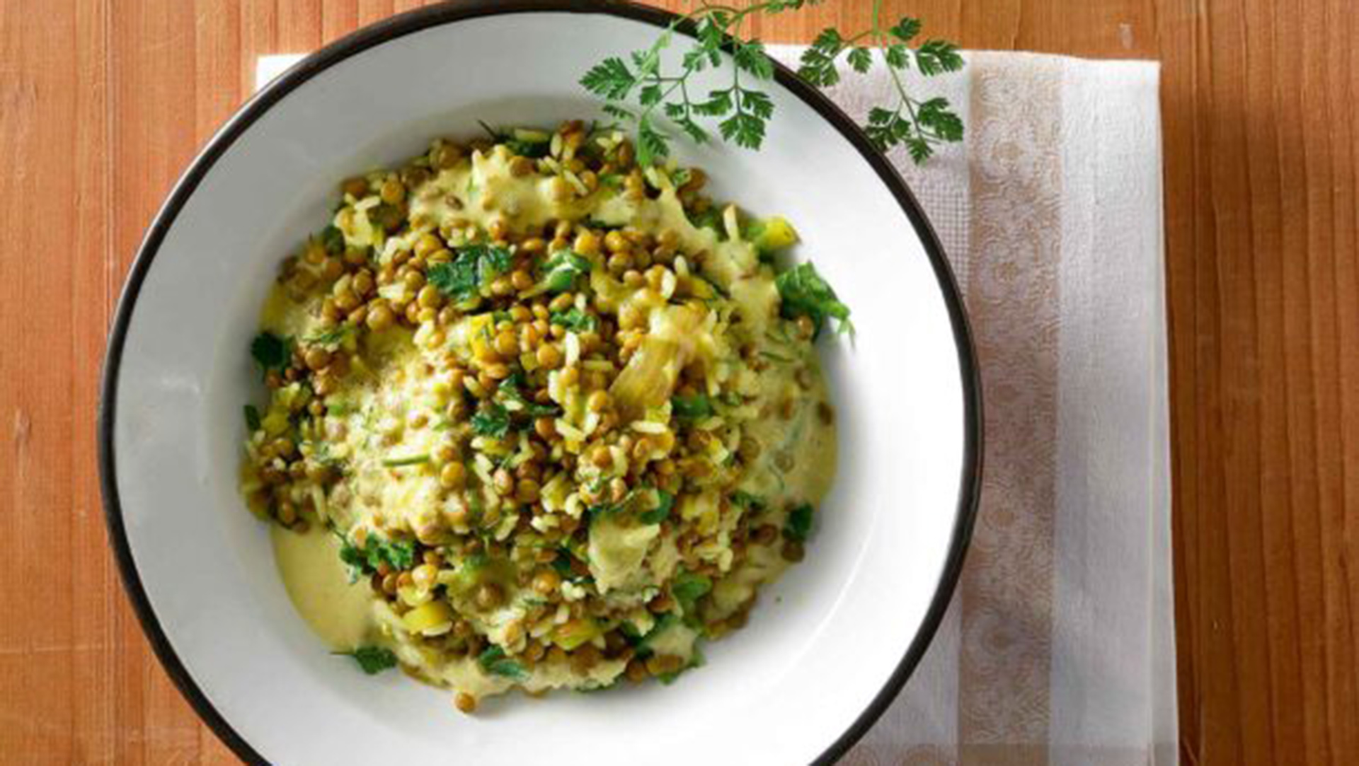- Μαγειρεύουμε για άλλα 20 λεπτά, μέχρι να μαλακώσουν οι φακές και να φουσκώσει το ρύζι. Ελέγχουμε τα υγρά και, αν χρειάζεται, προσθέτουμε λίγο από το νερό που κρατήσαμε.