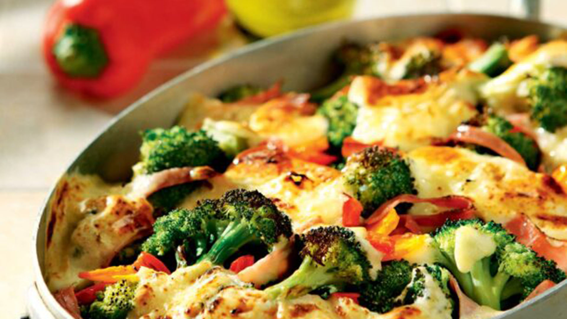 - Για τα μπρόκολα στον φούρνο με ζαμπόν και λευκή σάλτσα προθερμαίνετε πρώτα τον φούρνο στους 180°C.