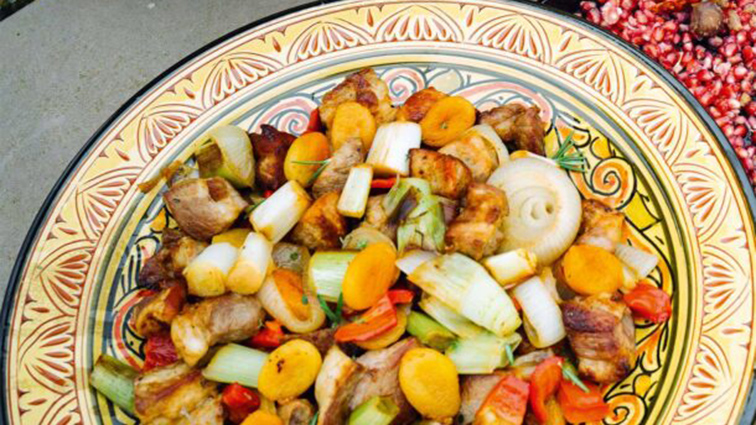 - Την επομένη βγάζουμε το κρέας από το ψυγείο. Σε ένα μπολ μουλιάζουμε τα βερίκοκα στο κρασί για περίπου 15 λεπτά.