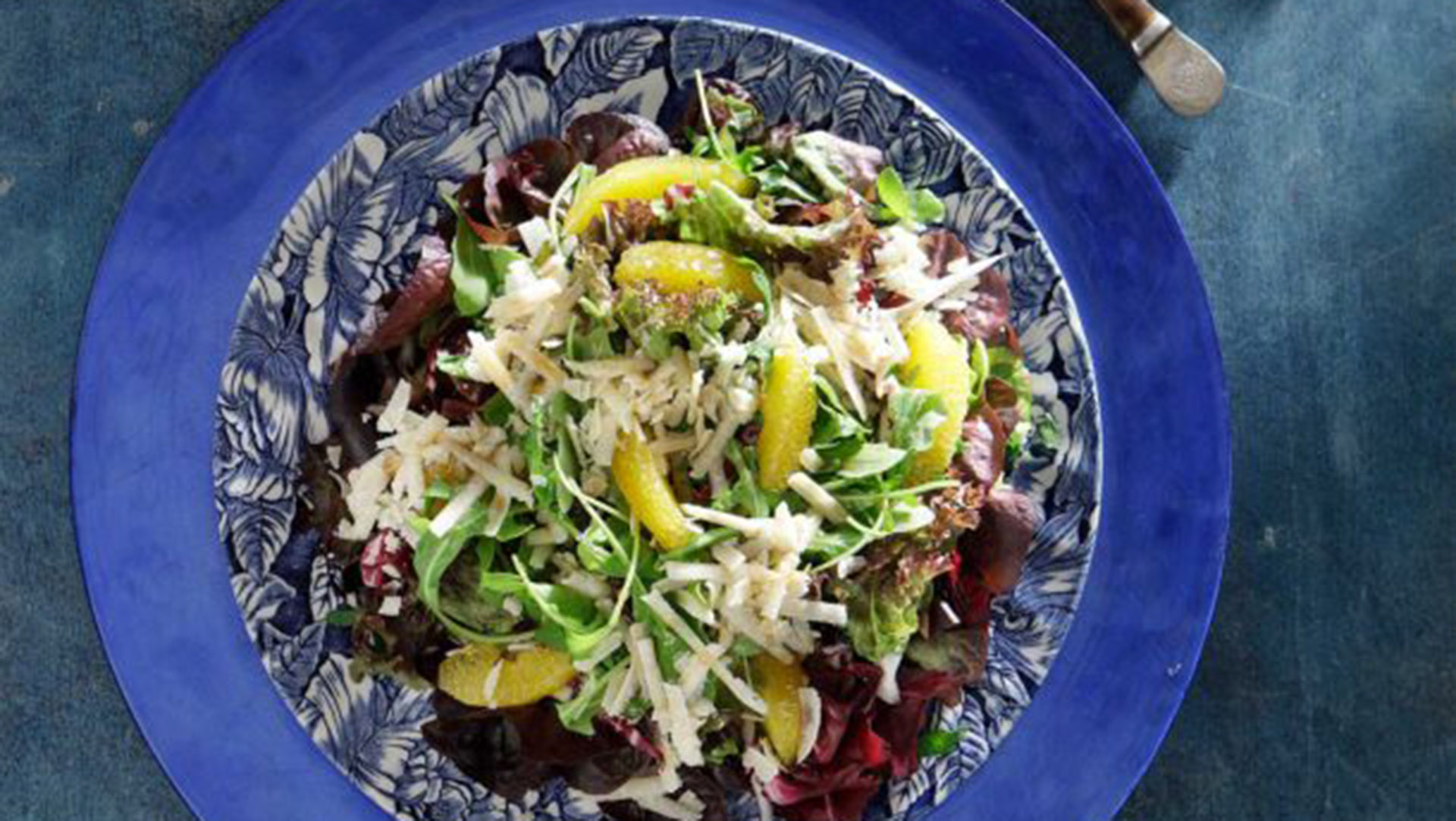 - Αδειάζουμε τη σαλάτα σε πιατέλα, πασπαλίζουμε με την παρμεζάνα και σερβίρουμε.