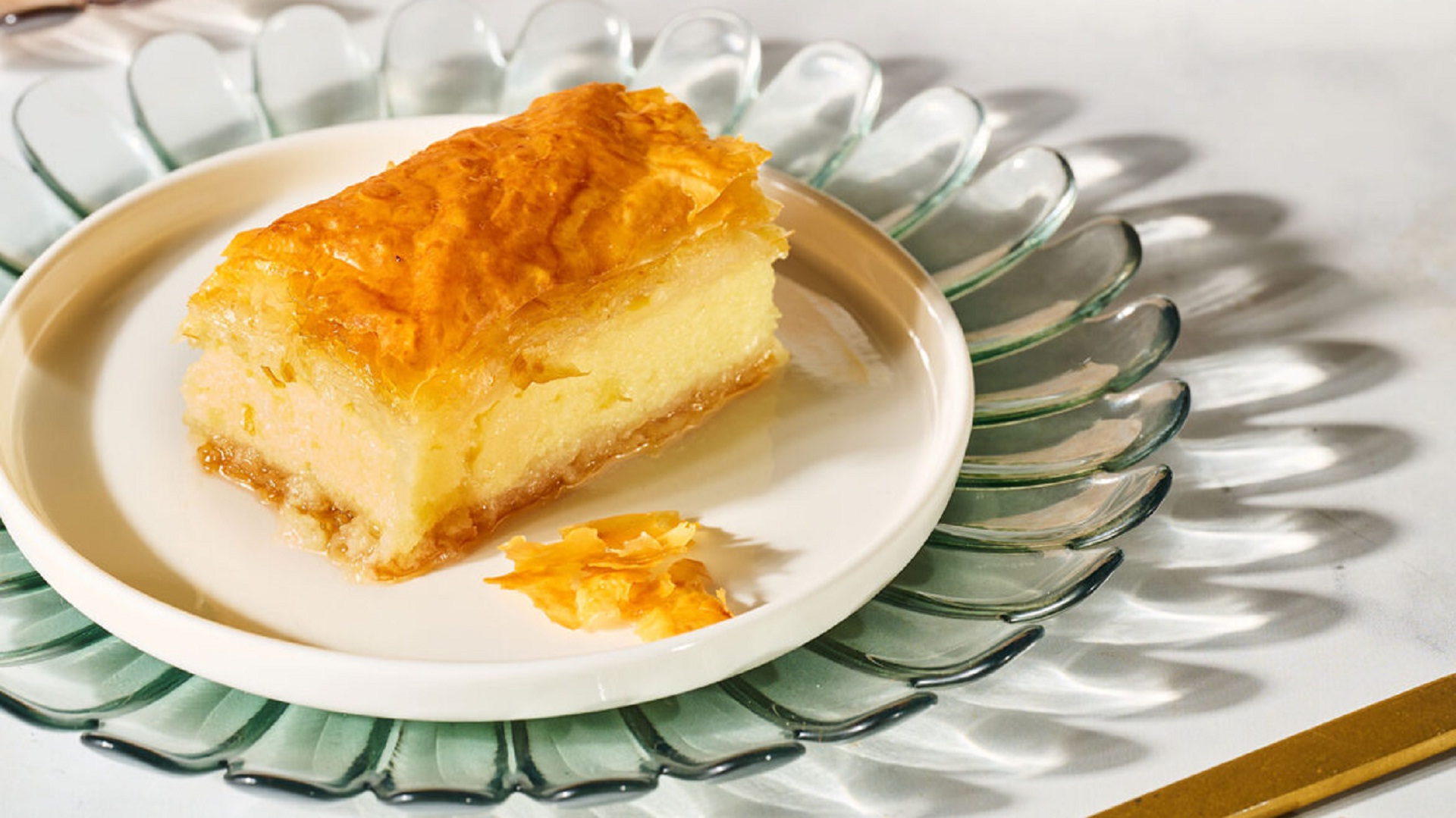 Τραγανά, σχεδόν «καραμελωμένα» φύλλα, βουτηγμένα σε πυκνό σιρόπι, σπάνε στο στόμα και απελευθερώνουν την κρέμα, τρυφερή και γαλατένια, χωρίς πολλά πολλά, ίσως μόνο ένα τσικ λεμόνι ή λίγη βανίλια, αλλά πάντα με την πλούσια γεύση του γάλακτος να κυριαρχεί.