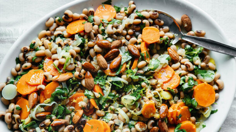 - Σκορπίζουμε το καρότο, τα ραπανάκια, τα αμύγδαλα και το ξύσμα, περιχύνουμε με τον χυμό λεμονιού και σερβίρουμε τη σαλάτα με μαυρομάτικα, μυρώνια και καυκαλήθρες.