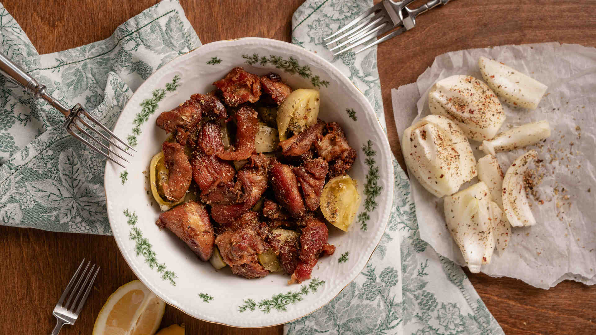Περιστρέφω τον διακόπτη της ηλεκτρικής κουζίνας, σαν να αναζητώ στην κεραμική της εστία κάποια πειρατική ραδιοφωνική συχνότητα. Ανεβαίνω στον Χορτιάτη. Η κατσαρόλα μου ακουμπάει σε πυκνωτές και λυχνίες, νομίζω πως καίει σε βραχέα κύματα. Με αυτά τα ζεστά κύματα σιγολιώνω στην κατσαρόλα λεπτά φύλλα χοιρινού λίπους, πυκνά λευκά, με μια επιμελώς ελάχιστη παρουσία κρέατος πάνω τους. Έχουμε δρόμο μπροστά μέχρι να δούμε τις τσιγαρίδες να γλυκοκαβουρδίζονται στο λαρδί τους. Προσθέτω αλάτι λίγο παραπάνω από τη συνταγή μου.