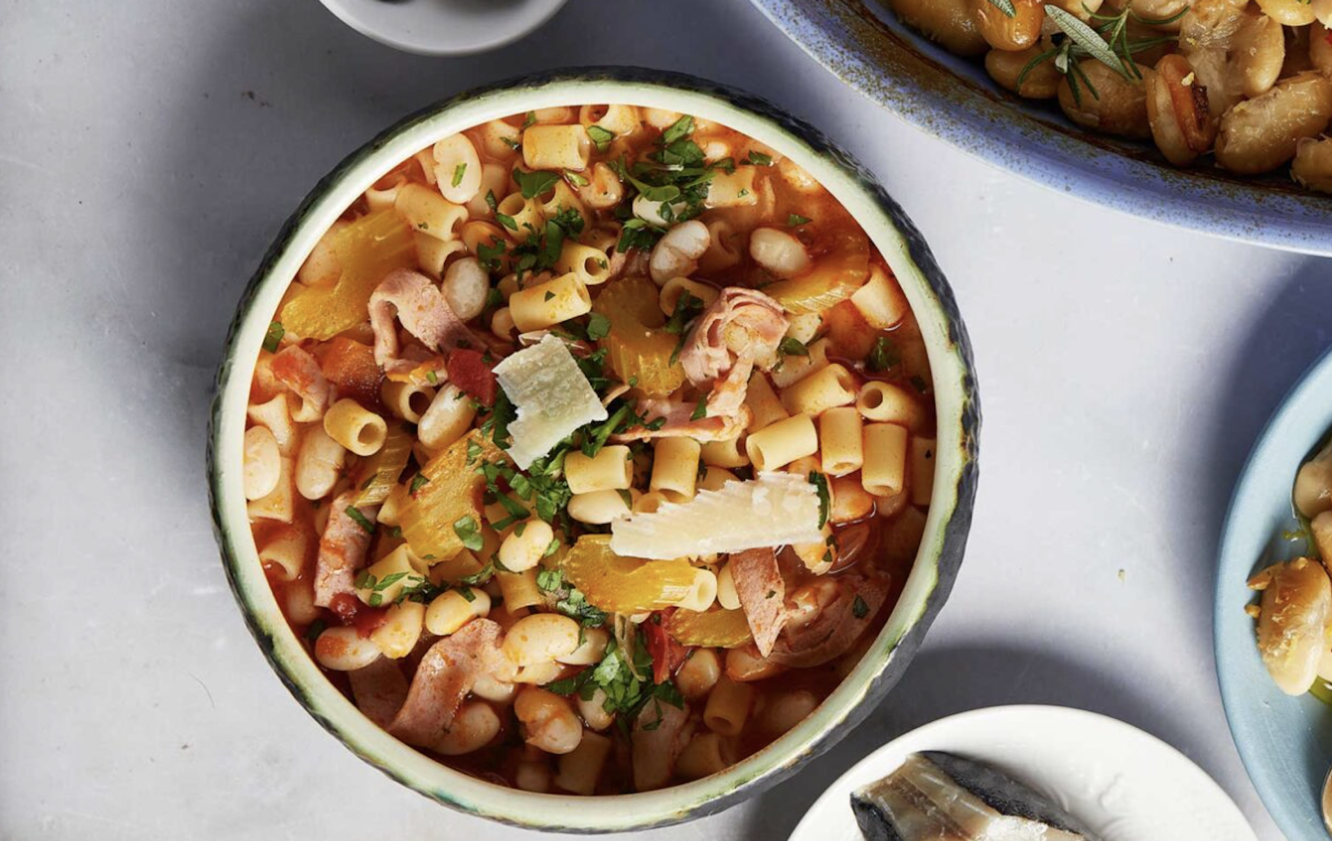 Πολύ αγαπούν στην Ιταλία τον συνδυασμό οσπρίων και ζυμαρικών. Τα εμπλουτίζουν με μύδια, με λουκάνικα αλλά και με μπέικον, όπως σε αυτή τη συνταγή.