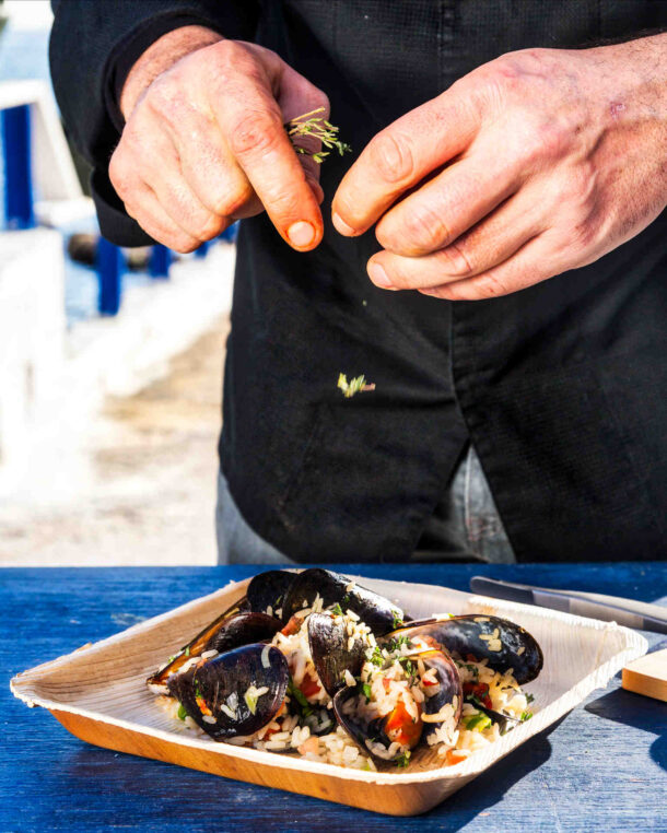 Κάθε σεφ βάζει και κάτι στο καθαροδευτεριάτικο τραπέζι μας. Παρακάτω θα βρείτε, ανάμεσα σε άλλα, τέσσερις διαφορετικές μαρινάδες για τις ελιές, πολλές συνταγές ταραμοσαλάτες μεταξύ των οποίων και μια από ταραμόγλωσσα (τα αυγά, μες τον σάκο τους, στον υμένα που τα περιβάλλει, όπως βγαίνουν από την κοιλιά του ψαριού), μερακλίδικη, ιδιαίτερη, φασόλια πιάζ αλλά και μαυρομάτικα που ξεκινάνε στην κατσαρόλα και τελειώνουν στο τηγάνι, με κάππαρη, λιαστή ντομάτα, καυκαλήθρες και ένα σωρό μυριστικά. Θα βρείτε επίσης τσουπωτά τηγανητά μύδια με υπέροχη χρυσαφένια κρούστα και μια ωραία σκορδαλιά που έχει και λίγο από το ζωμό τους –είναι ο τέλειος ουζομεζές– αλλά και καλαμάρια στον φούρνο γεμιστά με αρωματικό σπανακόρυζο, γαριδοκεφτέδες με πολίτικη σκορδαλιά, αγιορείτικες γαρίδες με μανέστρα…