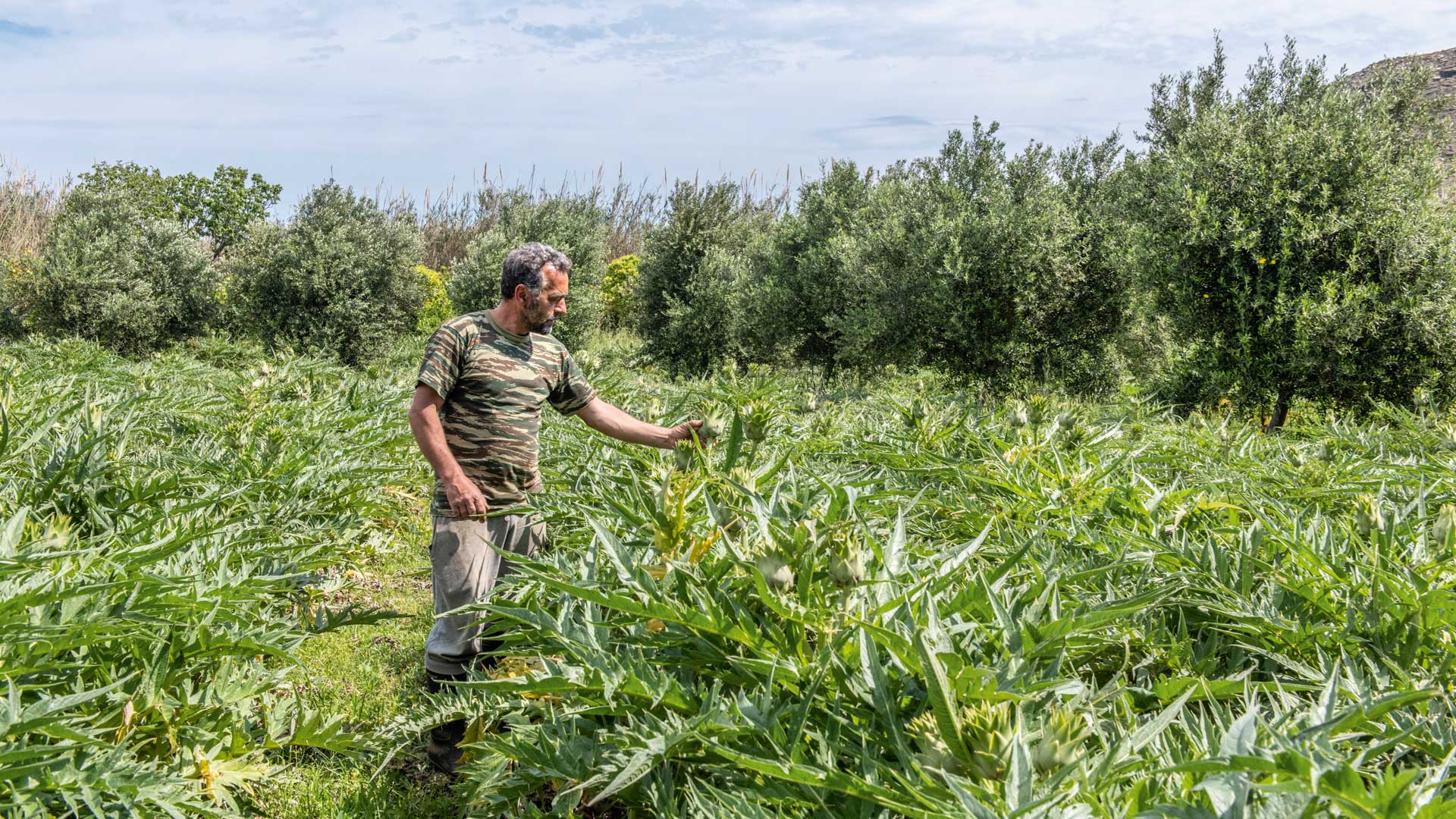 Πόση τρέλα χρειάζεται για να καλλιεργείς με πάθος και αφοσίωση ένα φυτό όλο αγκάθια; Η αγριαγκινάρα, που καρποφορεί μόνο για λίγες μέρες στα τέλη της άνοιξης, στο ιδιαίτερο τερουάρ της Τήνου, είναι το φόρτε του Τηνιακού αγρότη Φαβιανού Ρουγγέρη. Ο ίδιος εξηγεί ότι η ραγδαία κλιματική αλλαγή και οι ανομβρίες έχουν αποσταθεροποιήσει τις αποδόσεις της ήμερης αγκινάρας, αλλά όχι της άγριας, η οποία, παρότι ζόρικη στην καλλιέργεια, είναι πιο πεισματάρα, ανθεκτική στη λειψυδρία και σταθερά καρπερή, αν και με μικρή απόδοση.