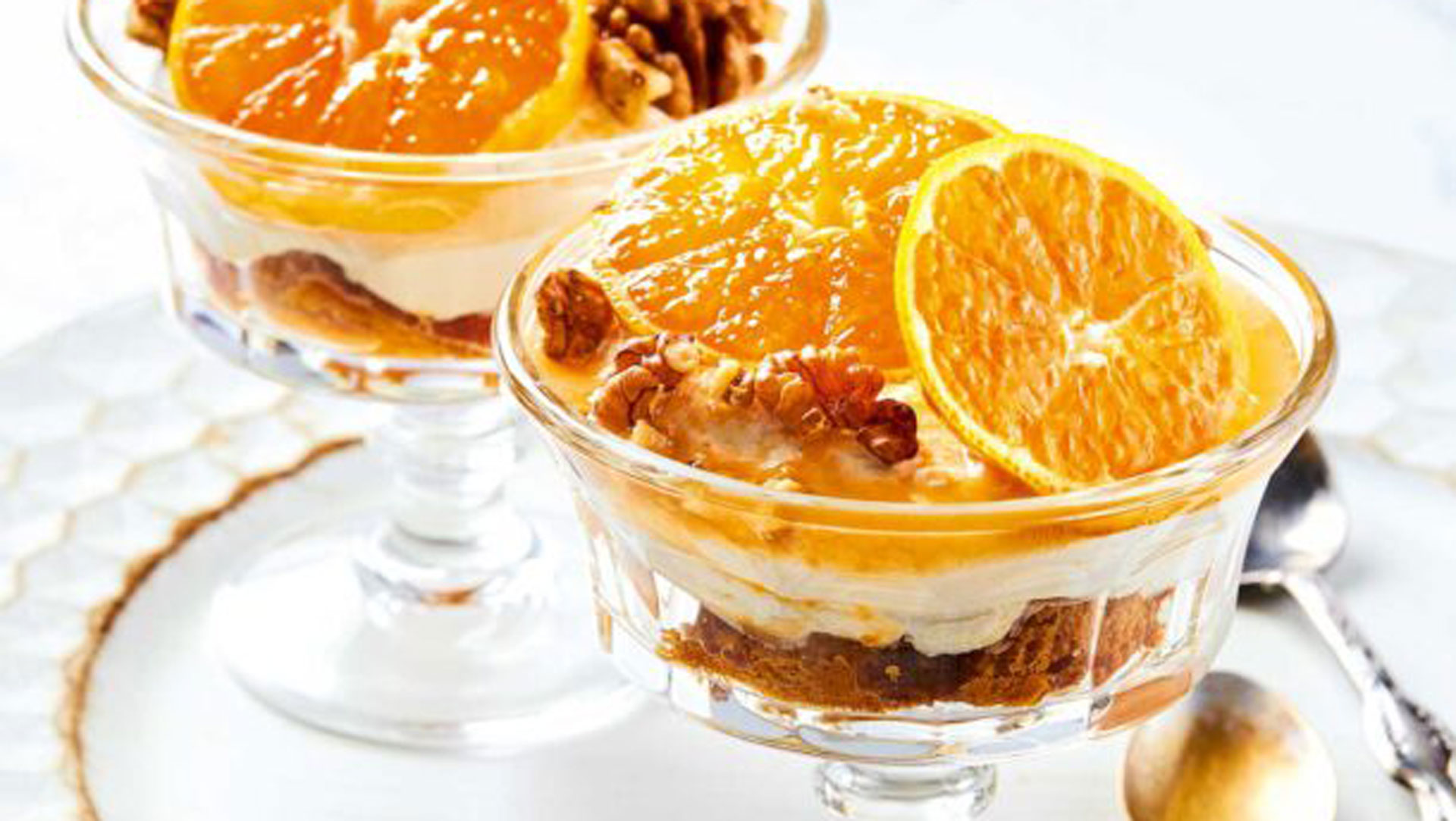 Το κλασικό τιραμισού σε μια πιο φρέσκια εκδοχή, σερβιρισμένο σε ποτήρι με στρώσεις αφράτης κρέμας και καραμελωμένα μανταρίνια που του δίνουν μια ευχάριστη, ζουμερή οξύτητα. Ενα επιδόρπιο ισορροπημένο, ιδανικό για να κλείσει ένα γεύμα.