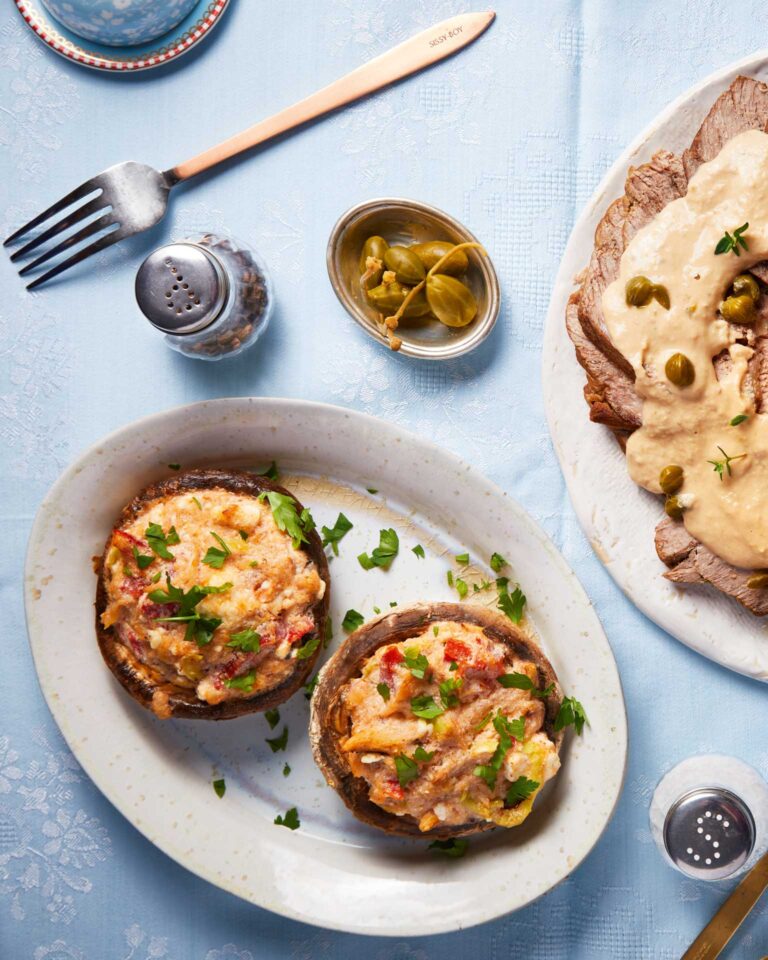 - Ψήνουμε για 5-7 λεπτά, μέχρι να ροδίσει απαλά η επιφάνεια της γέμισης.