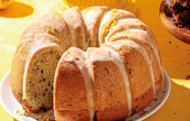 Η επάλειψη του μείγματος με αλευρόνερο πριν από το ψήσιμο σχηματίζει μια τραγανή αλλά και προστατευτική κρούστα, που δεν επιτρέπει στο κέικ να «αρπάξει». Η σεφ μάς δίνει και μια εναλλακτική σερβιρίσματος: προσπερνάμε το γλάσο με αλευρόνερο και μετά το ψήσιμο φτιάχνουμε ένα πανεύκολο αρωματικό γλάσο με βάση από λικέρ μαστίχας.