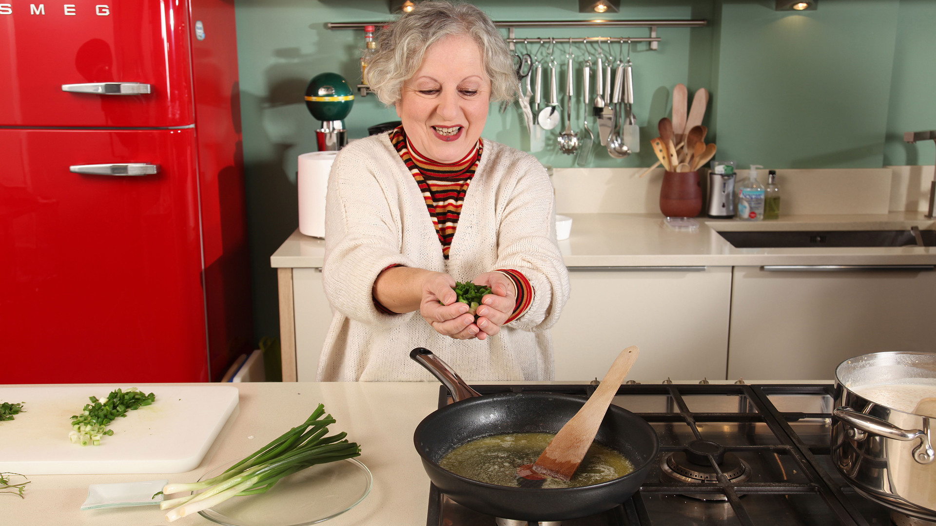 Αναντάμ παπαντάμ Ποντία, η κ. Ελένη Γερασιμίδου ανταποκρίθηκε φιλικότατα στο αίτημά μας· ξέκλεψε χρόνο από τις ασχολίες της για να μας μαγειρέψει και να μας μιλήσει για την ποντιακή μαγειρική, όπως την ξέρει η ίδια από πρώτο χέρι. Στο στούντιο έφτασε πρώτη από όλους. Μαζί της έφερε και μια σακούλα με φρέσκα κρεμμυδάκια και δυόσμο για τη σούπα που θα έφτιαχνε. Είχαμε αγοράσει κι εμείς από το σούπερ μάρκετ. «Θα βάλω αυτά που έφερα εγώ, αν δεν σας πειράζει». Σωστά. Αυτά από το μποστάνι του συζύγου της, του ηθοποιού Αντώνη Ξένου, ήταν μικροσκοπικά, τρυφερά και μοσχοβολιστά. Άλλο πράγμα.