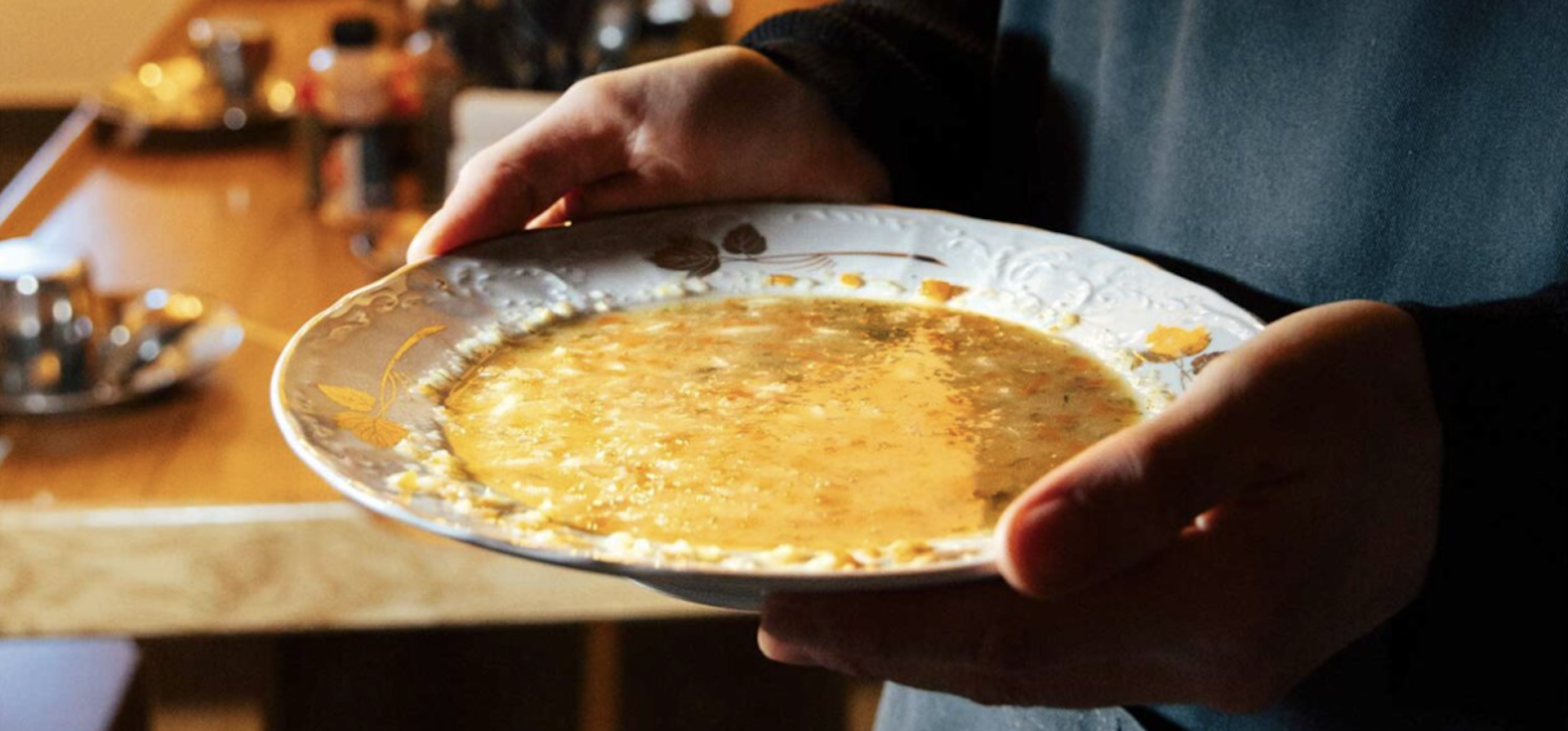 Το ίδιο αξιοσημείωτη σε αυτή την γαριδόσουπα είναι και η τεχνική όπου τα καρότα και οι πατάτες πολτοποιούνται και αυτά ωμά και μαγειρεύονται στη συνέχεια. Το τέλειο χύλωμα γίνεται με τη σταδιακή προσθήκη του άφθονου λεμονοχυμού, λίγο πριν από το σερβίρισμα, μια τεχνική συνηθισμένη στη μονή.