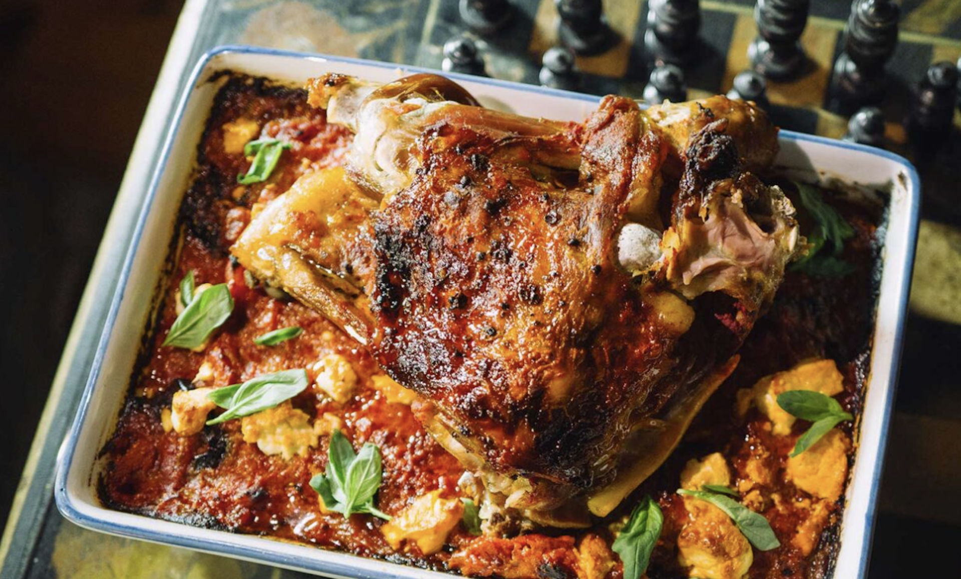 - Βάζουμε το κρέας σε ένα ταψί που να το χωράει σχεδόν ακριβώς. Σε ένα μπολ ανακατεύουμε το λιωμένο σκόρδο, την πάπρικα, το λάδι και μπόλικο αλατοπίπερο μέχρι να γίνουν μια πάστα. Με αυτήν αλείφουμε καλά όλο το κρέας, τρίβοντάς το απαλά για να απορροφήσει τα αρώματα.