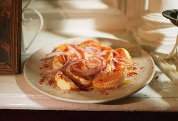 «Κόφτομε φτενάδες στρόγγυλες τα νεράτζια –παστρεμένα– μέσα στο γαδίνι για να μην πελληθεί το ζουμί. Ρίχτομε λάδι –πες και βάλε κάνια μεσόκουπα– κοκκινοπίπερο πολύο και τότσο αλάτι». Νεράντζια στην Κέρκυρα λένε τα πορτοκάλια, από την ιταλική λέξη naranza (πορτοκάλι). Αυτή είναι η περιγραφή της νεραντζοσαλάτας που κάνει η Νινέττα Λάσκαρι στο βιβλίο της. Καμιά φορά προσθέτουν και ροδέλες κρεμμυδιού, όπως εδώ.