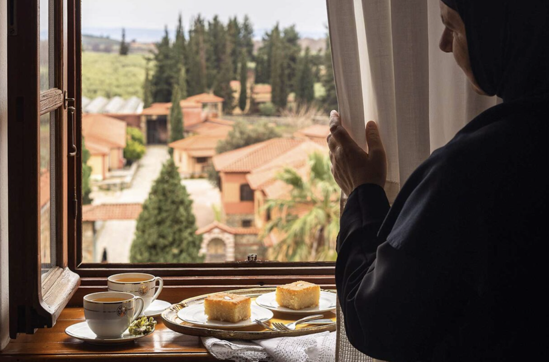 Είναι από τα πιο ωραία σιροπιαστά γλυκά ταψιού της Μονής της Ορμύλιας, με σιμιγδάλι και μαστίχα Χίου. Η ζύμη του πρέπει να είναι μαλακή. Έτσι, το σιμιγδάλι φουσκώνει, γίνεται πιο αφράτο και απορροφά καλά το σιρόπι, επομένως τα κομμάτια αποκτούν καλή δομή και στέκονται, δεν χαλάνε στο κόψιμο.