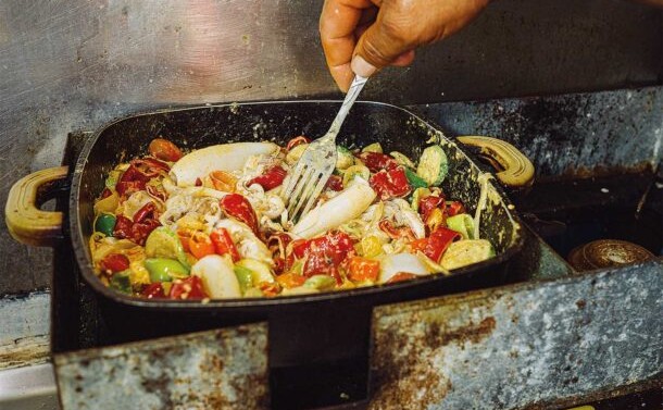 - Προσθέτουμε τα καλαμάρια και σοτάρουμε για άλλα 3-4 λεπτά.
