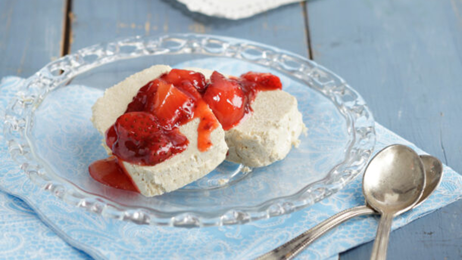 - Βάζουμε τον χαλβά σε μια πιατέλα και από πάνω ρίχνουμε τη σάλτσα φράουλας.
