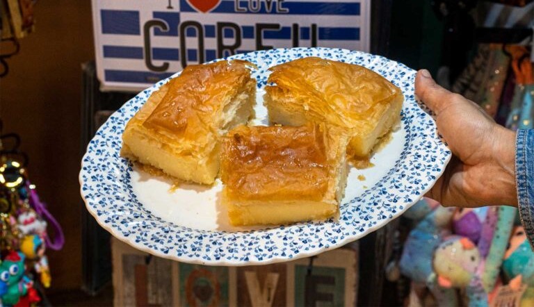 - Για το γαλακτομπούρεκο με βούτυρο Κερκύρας από το φημισμένο γαλακτοπωλείο Περικλής Αλέξης, ξεκινάμε με το σιρόπι.