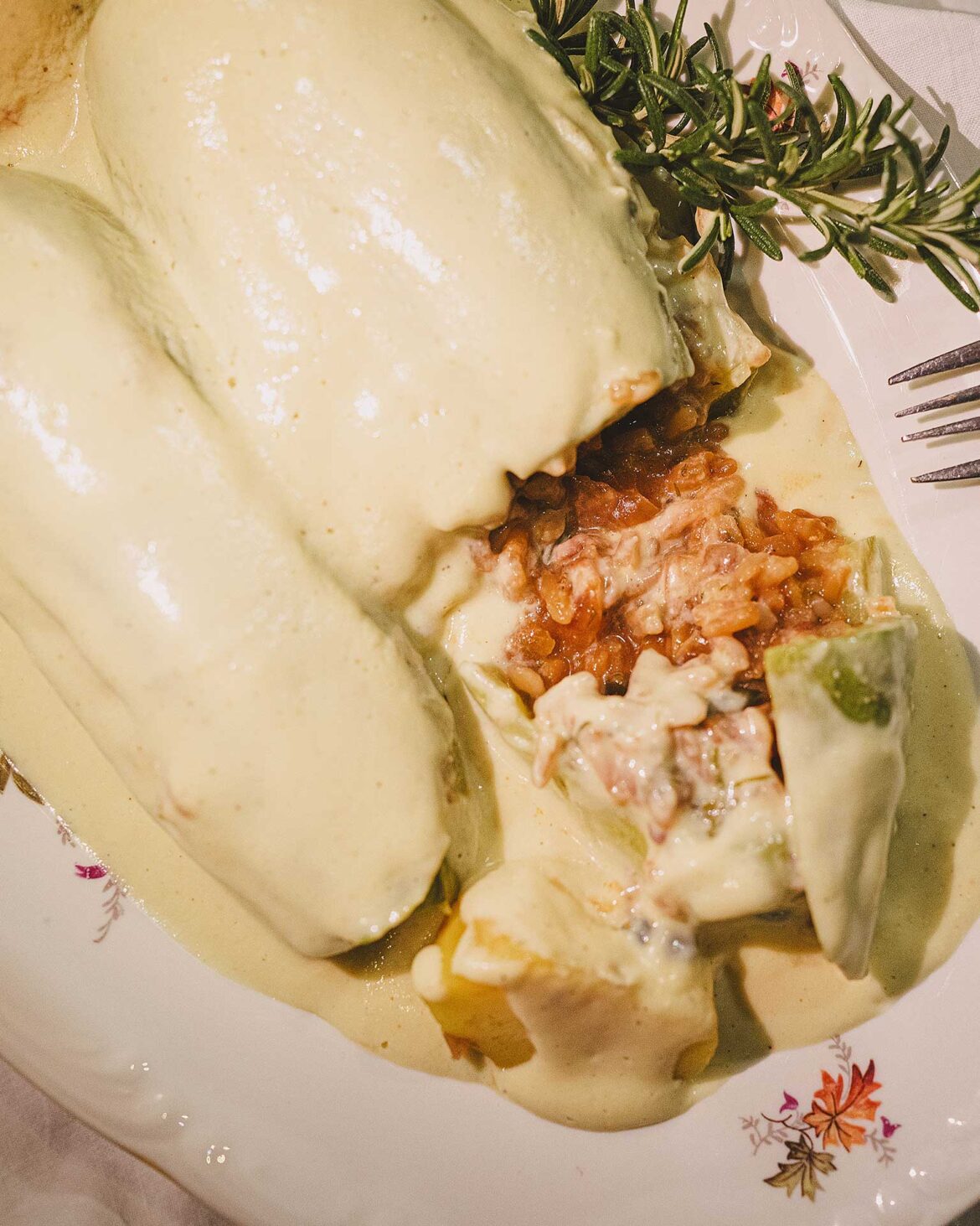 Σε περίοδο άλαδης νηστείας, δεν τσιγαρίζουμε τη γέμιση σε λάδι, αλλά την αχνίζουμε με λίγο νερό, ενώ αντικαθιστούμε το λάδι της σάλτσας με ίση ποσότητα από ταχίνι. Οταν η νηστεία το επιτρέπει, μπορούμε να ρίξουμε στη γέμιση (αφού την αποσύρουμε από τη φωτιά) λίγο τόνο κονσέρβας ή τυρί φέτα, ή μπορούμε να τα αυγοκόψουμε. Οταν χτυπάμε τη λευκή σάλτσα, αν η νηστεία το επιτρέπει, μπορούμε να ρίξουμε και λίγο γάλα ή κρέμα γάλακτος. Ακόμη γίνονται πολύ εξαιρετικά με κρέμα μπεσαμέλ πάνω, στη θέση του καπακιού, χωρίς άλλη σάλτσα. Μπορούμε επίσης να τα μαγειρέψουμε και κοκκινιστά, με σάλτσα-μπελντέ ή με φρέσκια ντομάτα: Βάζουμε λίγη ποσότητα μέσα στη γέμιση και λίγη στο ταψί, ώστε στο σερβίρισμα να έχει λίγο ζουμί στο πιάτο.
