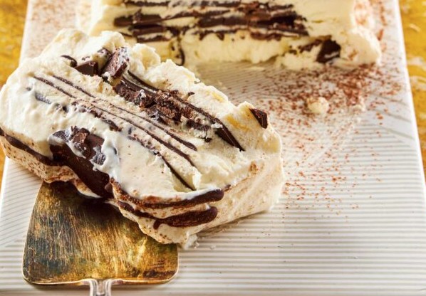 Μια συνταγή εμπνευσμένη από την κλασική Viennetta, το «οικογενειακό» παγωτό που έκανε θραύση στα ’90s και το οποίο μας έστελναν οι γονείς μας να πάρουμε από το περίπτερο όταν έσκαγαν μύτη ξαφνικοί επισκέπτες. Η δική μας, σπιτική εκδοχή περιλαμβάνει ένα εύκολο παρφέ βανίλια με ζαχαρούχο γάλα, λιωμένη σοκολάτα και σαντιγί.