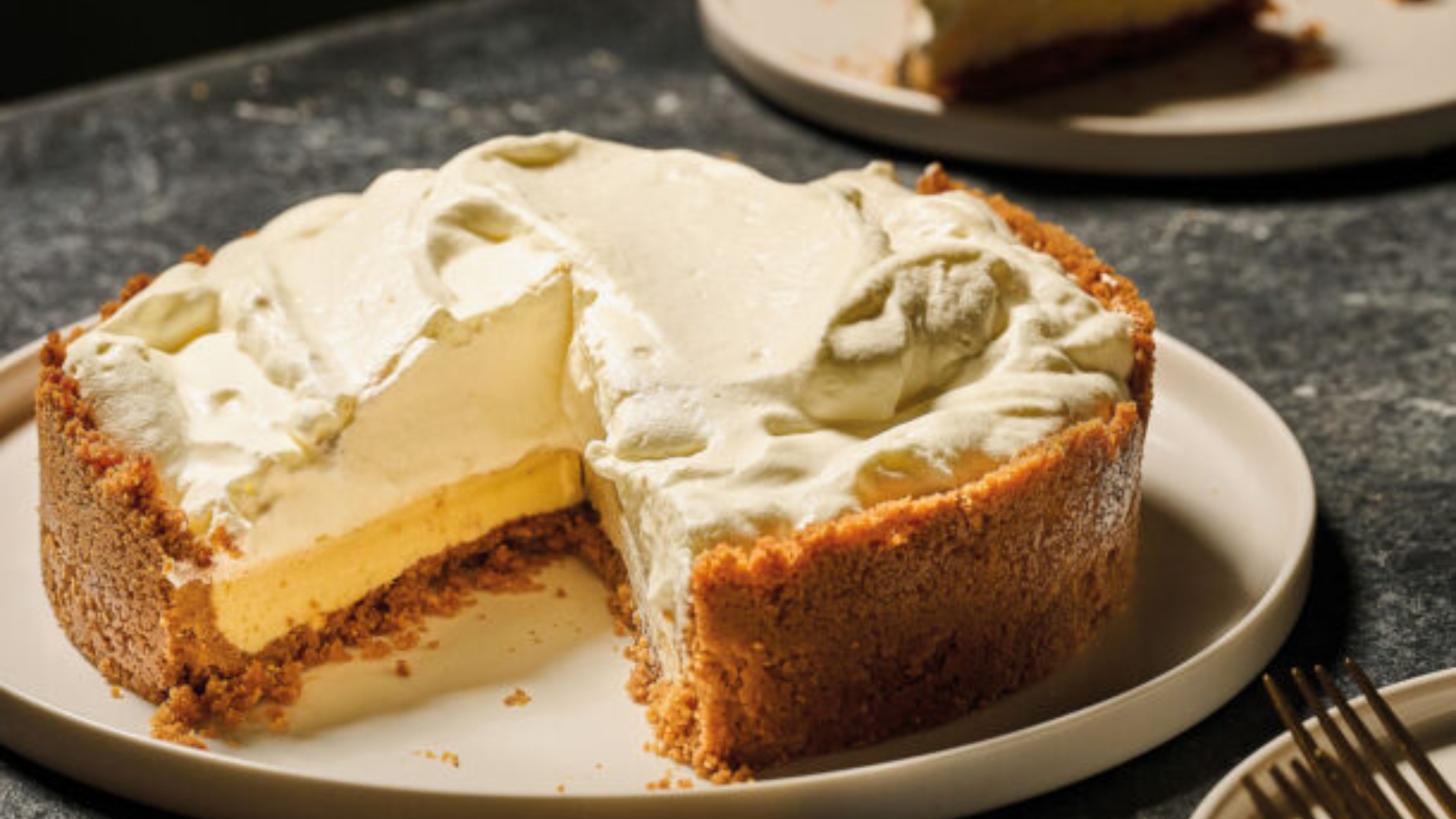 - Με μια σπάτουλα την απλώνουμε πάνω από την κρύα τάρτα, δημιουργώντας βουναλάκια και κορυφές με τη σπάτουλα.