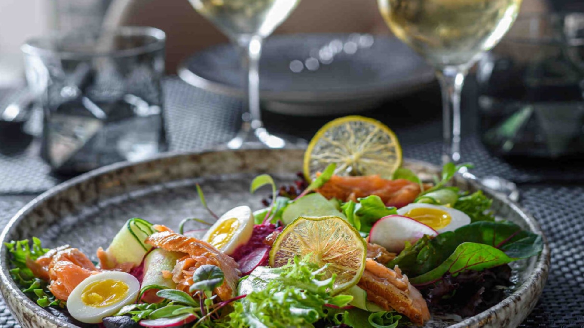 Βασικό και κρίσιμο για να οδηγηθούμε σε γευστικά αποτελέσματα είναι να «γνωρίσουμε» τα συστατικά της σαλάτας μας, τα οποία μπορεί να είναι από απλά πράσινα λαχανικά και ντομάτες έως σύνθετες συνθέσεις, που περιλαμβάνουν πρωτεΐνες, δημητριακά και ντρέσινγκ. Ιδιαίτερη σημασία όσον αφορά τα πράσινα λαχανικά πρέπει να δώσουμε σε ρόκα, σπανάκι, ραντίτσιο, που επηρεάζουν σημαντικά τον συνδυασμό. Καθοριστικά επηρεάζει φυσικά η παρουσία πρωτεΐνης και συστατικά όπως κοτόπουλο, γαρίδες, τυριά, αλλαντικά μπορούν να προσθέσουν πλούτο και βάθος. Τα φρέσκα ή αποξηραμένα φρούτα αλλά και οι ξηροί καρποί προσθέτουν μια γλύκα που πρέπει επίσης να λάβουμε υπόψη. Τέλος, σημαντικό είναι πάντα το ντρέσινγκ, το οποίο, αν θέλετε ένα ποτήρι κρασί δίπλα στο πιάτο σας, φροντίστε να μην είναι πολύ έντονο, αποφεύγοντας πολύ πικάντικες γεύσεις, όπως αυτές του ξιδιού και της μουστάρδας.