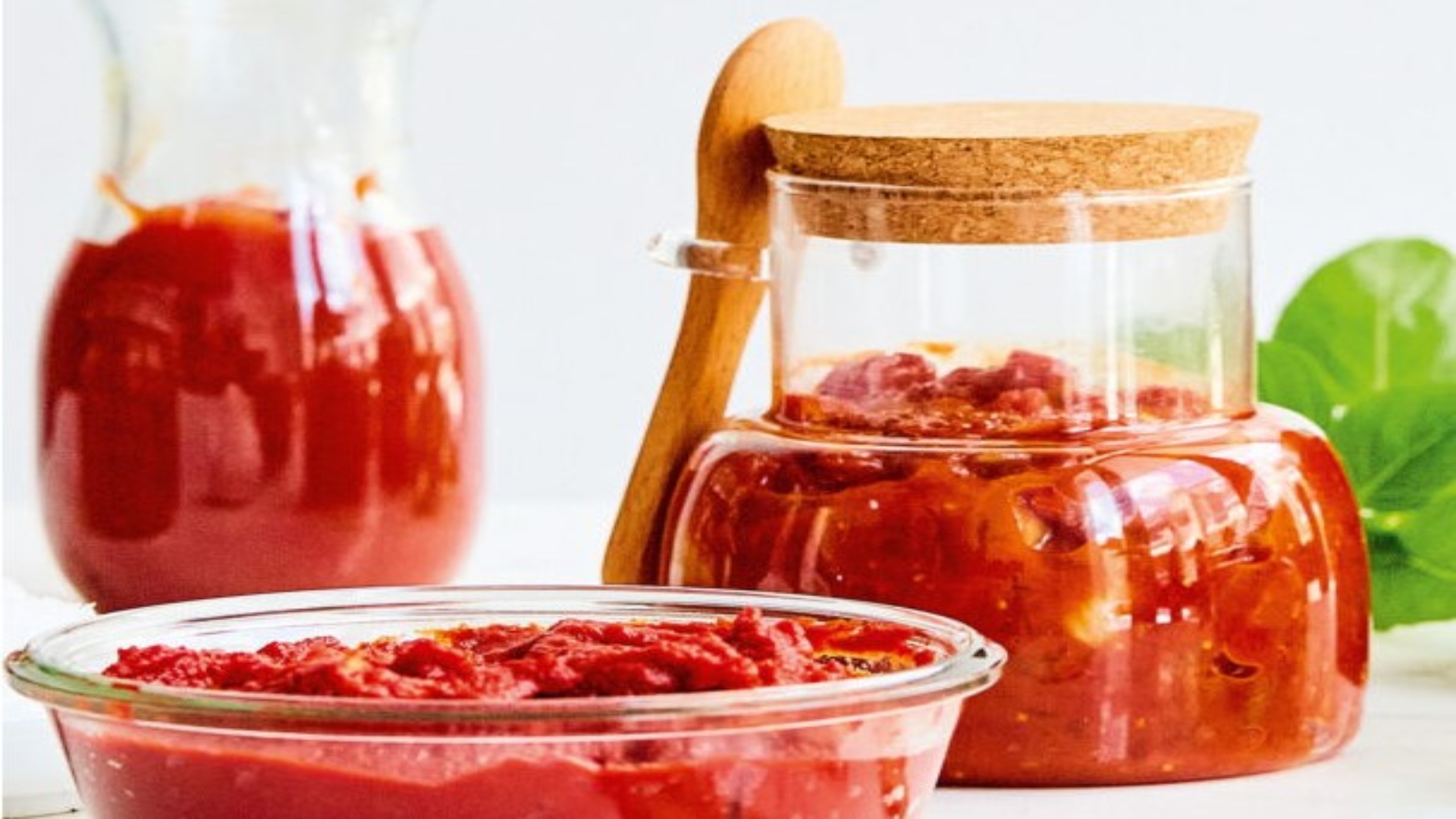 - Κόβουμε τις ντομάτες στα 4 και αφαιρούμε με ένα κουταλάκι τα σπόρια. Βάζουμε τα καθαρισμένα κομμάτια της ντομάτας στον πολυκόφτη (σε δόσεις) και τα πολτοποιούμε.