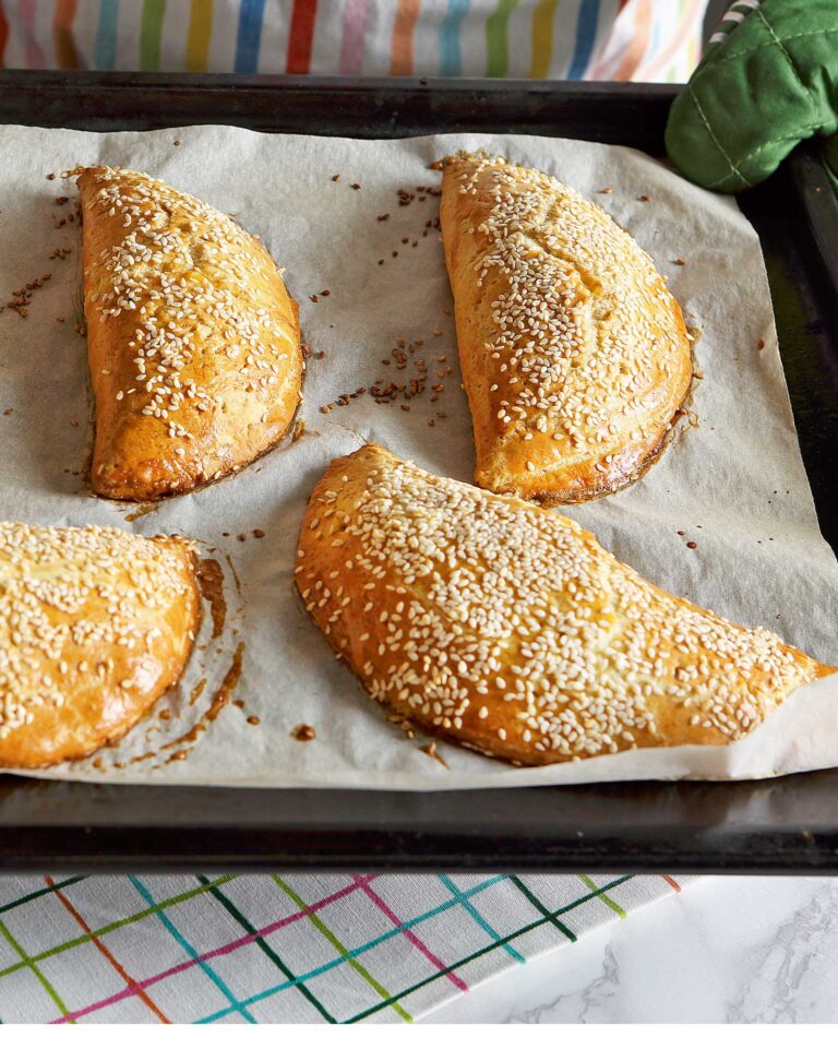 - Διπλώνουμε την τυρόπιτα σε μισοφέγγαρο.