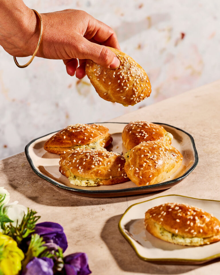 - Πασπαλίζουμε την επιφάνεια με το σουσάμι.