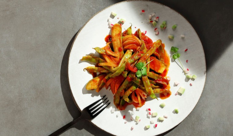 - Στο ίδιο λάδι ρίχνουμε τα φασολάκια, σκεπάζουμε την κατσαρόλα και τα αφήνουμε για 3-4 λεπτά, μέχρι να μαραθούν.