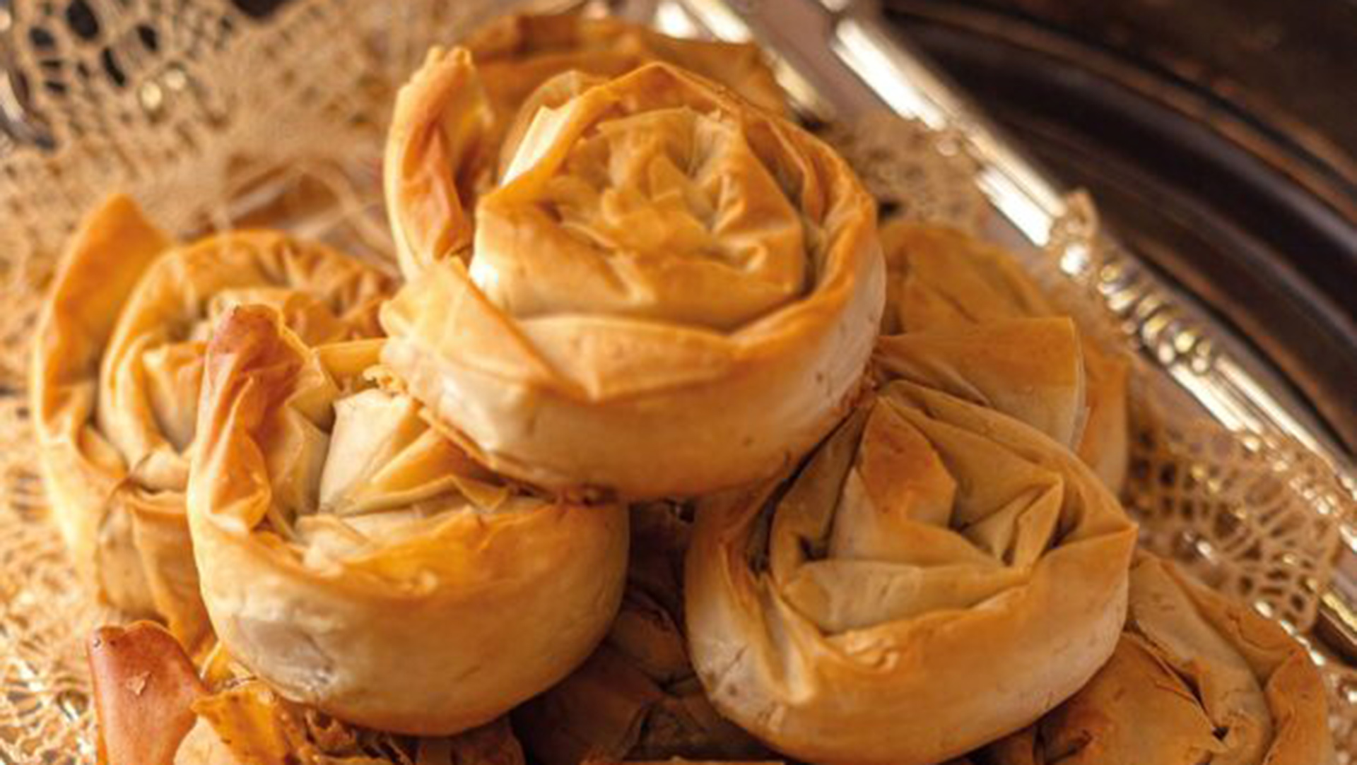 - Το στρίβουμε σαν σαλίγκαρο και το τακτοποιούμε στο ταψί. Επαναλαμβάνουμε τη διαδικασία με τα υπόλοιπα φύλλα.