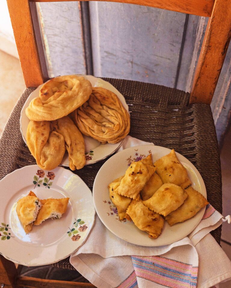 Με την ίδια ζύμη και εξίσου λεπτό φύλλο η Ευγενία έφτιαξε και μυζηθροπιτάκια, σαν μικρά φακελάκια, γεμιστά με φρέσκια γλυκιά μυζήθρα και βάρσαμο, δηλαδή δυόσμο. Η δοσολογία της ζύμης βγάζει κι αυτή 25 πιτάκια, με περίπου 500 γρ. γλυκιά, ανάλατη μυζήθρα στη γέμιση, καλά ζυμωμένη με τα χέρια για να γίνει σαν σφιχτή πάστα.