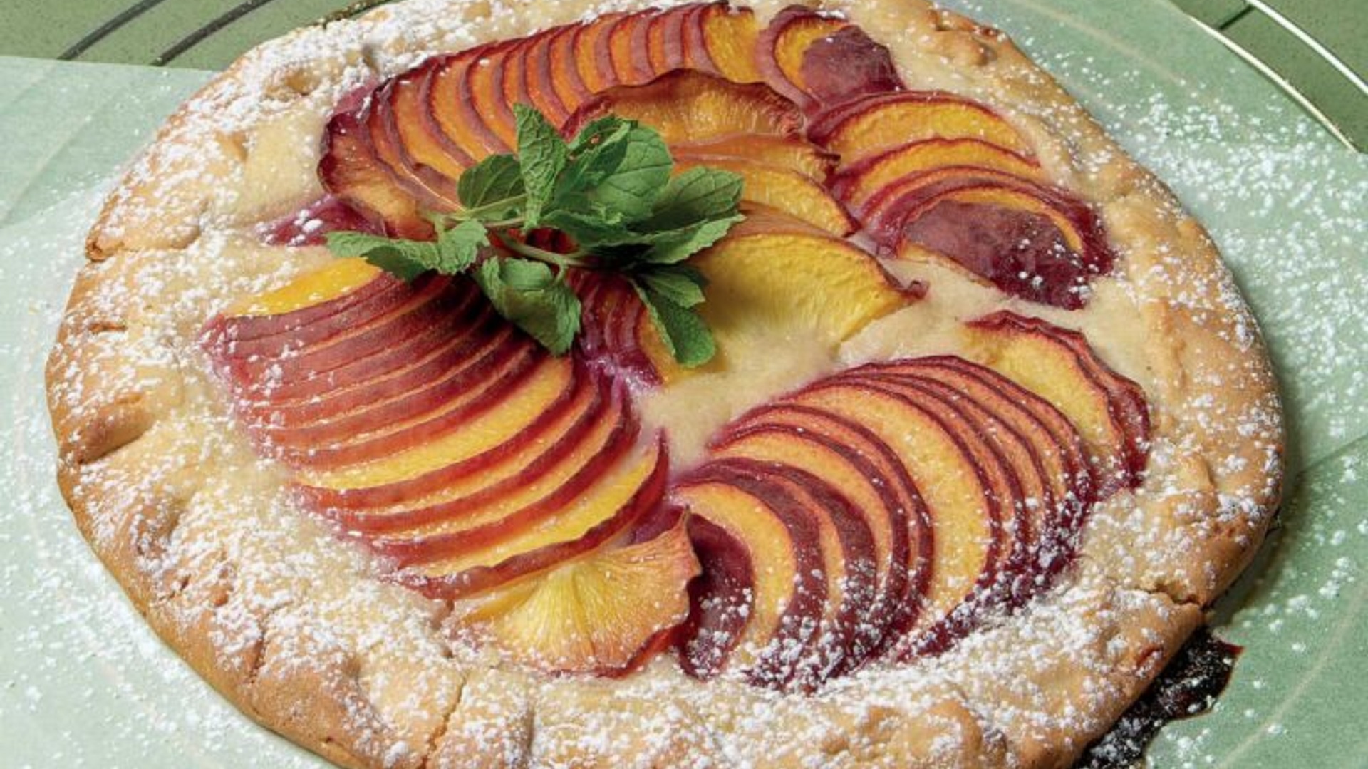 Είναι μια εύκολη τάρτα που δεν χρειάζεται φόρμα. Η ζύμη κλείνει μέσα της μια κρέμα λεμονιού και φρέσκα ροδάκινα, και απογειώνεται με την αμυγδαλόψυχα.