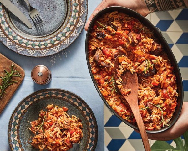 - Βγάζουμε το ταψί από τον φούρνο –πρέπει να έχει ακόμα αρκετά υγρά– και αφήνουμε το φαγητό να «ξεκουραστεί» για περίπου 10 λεπτά.