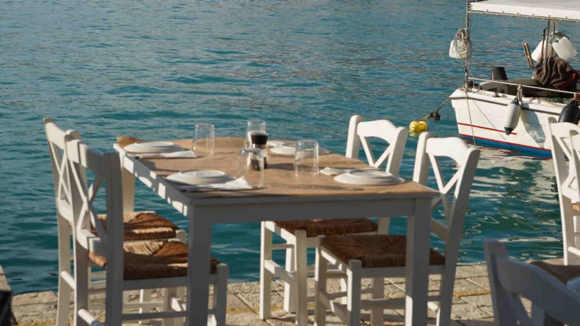 Το ανακαίνισαν, διαμόρφωσαν τον εσωτερικό χώρο σε κουζίνα και έστησαν λευκά τραπεζοκαθίσματα έξω, στο πλακόστρωτο, κάτω από τους μεγάλους ευκάλυπτους της περαντζάδας και πλάι στις δεμένες ψαρόβαρκες, τα σκαφάκια και το taxi boat που μεταφέρει όσους θέλουν να κάνουν μερικά μακροβούτι στο Αγιοφύλλι, ένα όμορφο απάνεμο παραλιάκι με βαθιά νερά. Ο ήλιος πέφτει σιγά-σιγά όταν καθόμαστε, ο κόσμος έχει αρχίσει το σουλάτσο, λαμπυρίζουν τα φωτάκια στις εσοχές του πέτρινου τοίχου, δίπλα στο μεγάλο λ, το πρώτο γράμμα της Λευκάδας, που φιγουράρει αντί για ταμπέλα στο πλάι της πόρτας.