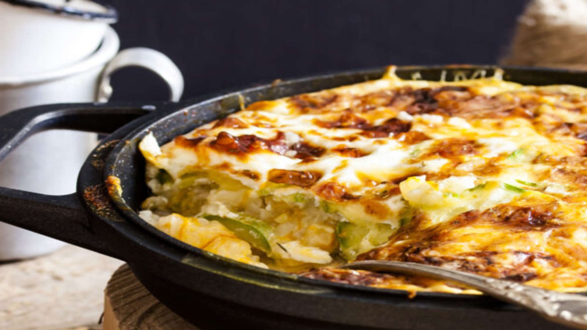 - Σε ένα μεγάλο μπολ χτυπάμε τα αυγά με το γάλα και το αλεύρι και ρίχνουμε το μείγμα στο τηγάνι με τα λαχανικά.