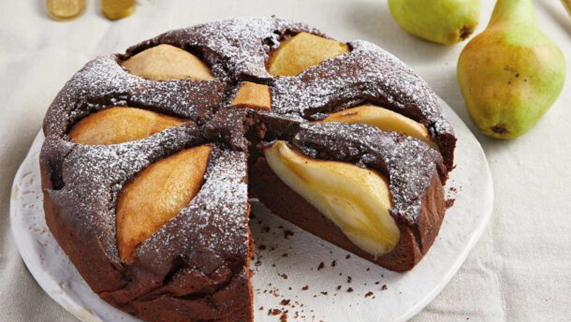 - Για το κέικ σοκολάτα, με αχλάδια και φουντούκια, ξεκινάμε προθερμαίνοντας τον φούρνο στους 160°C στη λειτουργία του αέρα.