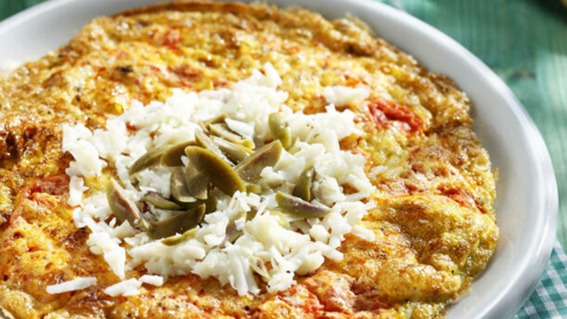 - Όταν η ομελέτα είναι έτοιμη, προσθέτουμε από πάνω τις ελιές και το τριμμένο τυρί, αποσύρουμε από τη φωτιά και σερβίρουμε.