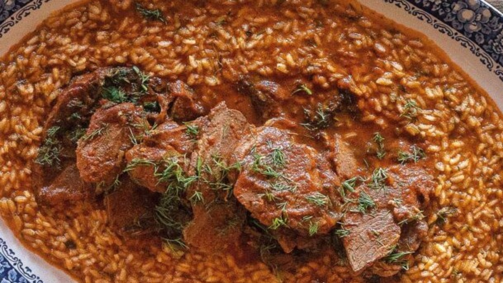 Αυτό το φαγητό το βρήκα στο βιβλίο της Λάσκαρι. Το δοκίμασα πολλές φορές και τροποποίησα τη συνταγή έτσι όπως είναι τώρα. Το έχω καθιερώσει και το κάνω με ζυγούρι, γιατί έχει πιο νόστιμο και στιβαρό κρέας. Συνήθως το μαγειρεύω σε χαμηλή φωτιά όλο το βράδυ, για να γίνει πιο μαλακό. Στην αστική εκδοχή του δεν το είχαν με τόσα μυρωδικά όσα χρησιμοποιώ εγώ», λέει η Βασιλική. Στην πολύ πιο απλή εκδοχή που παρουσιάζει συνοπτικά στο βιβλίο της η Λάσκαρι, το ρύζι προστίθεται μέσα στο φαγητό όταν γίνει το κρέας και βράζει a far la onda (δηλαδή να έχει πήξει τόσο που όταν το κουνήσεις να κάνει “κύμα”)», λέει η Βασιλική Καρούνου, ερευνήτρια της κορφιάτικης γαστρονομίας.