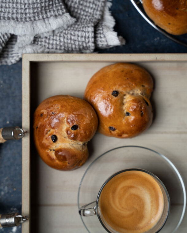 Η Βρετανία ήταν για αιώνες ο κύριος εισαγωγέας μαύρης σταφίδας από την Ελλάδα, για τις περίφημες πουτίγκες, αλλά και για μικρά γλυκά σταφιδόψωμα με μπαχαρικά και με έναν σταυρό στην επιφάνεια. Τα ψωμάκια αυτά, τα hot cross buns, ζυμώνονται και σερβίρονται τη Μεγάλη Παρασκευή, σηματοδοτώντας τη λήξη της Σαρακοστής. Φτιάχνονται στις περισσότερες χώρες της Κοινοπολιτείας, σε σπίτια και σε φούρνους ή ζαχαροπλαστεία, σε διάφορες παραλλαγές και με διαφορετική γέμιση ή επικάλυψη. Παραδοσιακά, ένα από αυτά το κρεμούσαν από μια κλωστή στην κουζίνα του σπιτικού, για καλή τύχη, και το είχαν για γιατρικό απέναντι σε αρρώστιες ή φυλαχτό για μακρινά θαλασσινά ταξίδια».