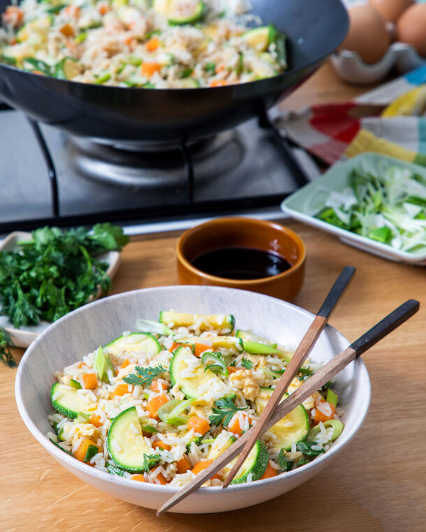 Κι όταν θέλουμε ένα φαγητό πραγματικά στο πι και φι, κάνουμε ρύζι τηγανητό στο γουόκ ή σε βαθύ τηγάνι, με λίγη σόγια σος, λαχανικά, γαρίδες ή κοτόπουλο και αυγό. Είναι το απόλυτο γεύμα ταχύτητας. Μπορούμε να το φτιάξουμε και με ρύζι βρασμένο και κρύο από το ψυγείο.