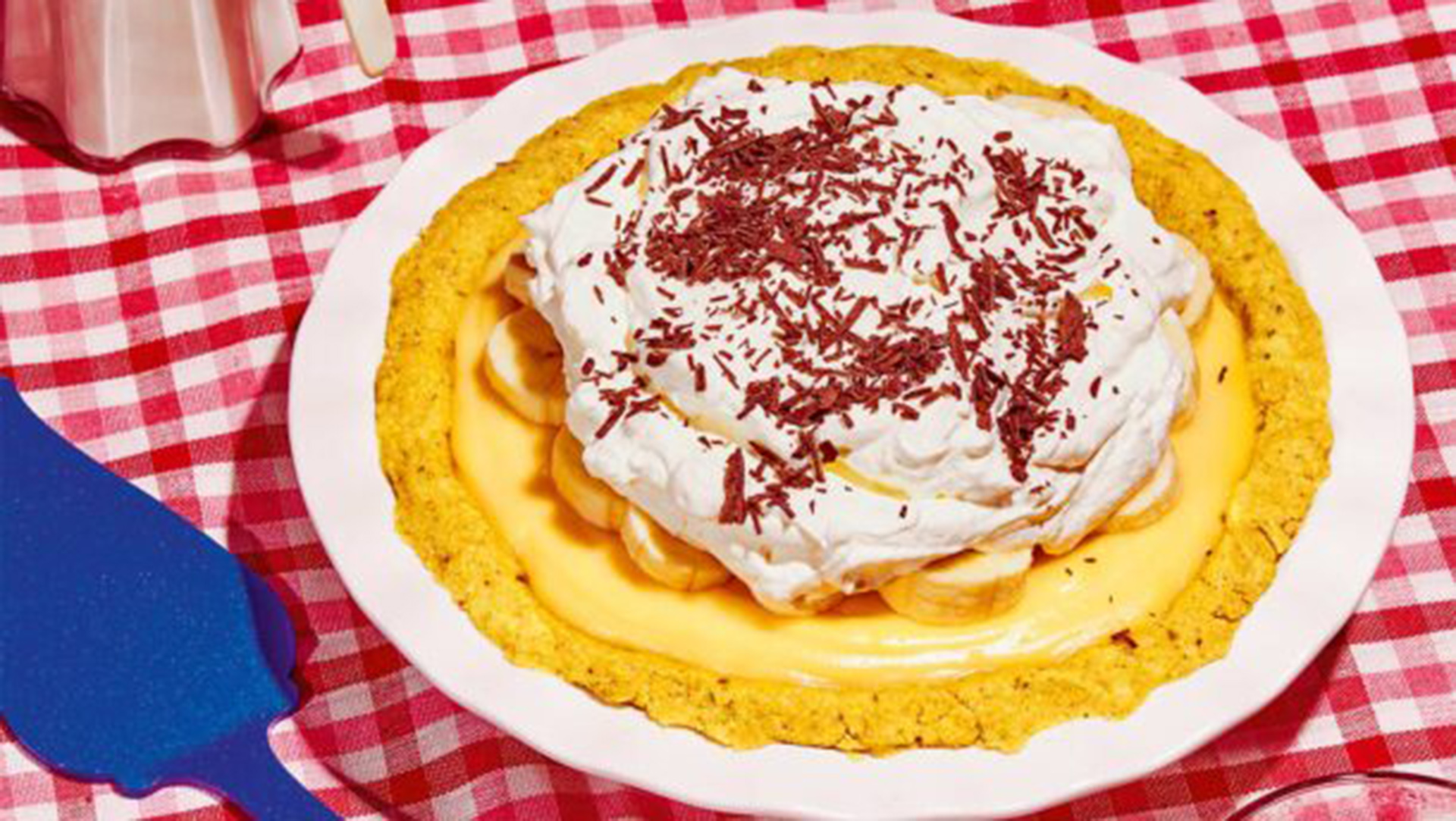 - Για την banana cream pie (ταρτα με κρεμα, μπανανες και βαση γκοφρετας) ξεκινάμε με τη βάση της γκοφρέτας και σε ένα μπολ ανακατεύουμε όλα τα υλικά μαζί μέχρι να γίνει ένα μείγμα σαν βρεγμένη άμμος.