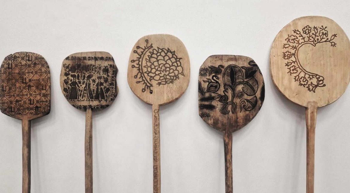 Και όμως, η μνήμη συχνά μυρίζει καμένο ξύλο. Από τις σόμπες, το μαγκάλι, στον χωριάτικο φούρνο, εκεί όπου η φωτιά έψηνε όχι μόνο ψωμί αλλά και υλικά που συνιστούν την ταυτότητά μας, την κουλτούρα του τόπου. Ένα ξύλινο φτυάρι για τον φούρνο, το πυρίφτε, γίνεται για τον εικαστικό Διονύση Χριστοφιλογιάννη το πιο απλό και το πιο φορτισμένο αντικείμενο: καθημερινό και τελετουργικό, εργαλείο και σφραγίδα, παιδική ανάμνηση και καλλιτεχνική πρόταση.
